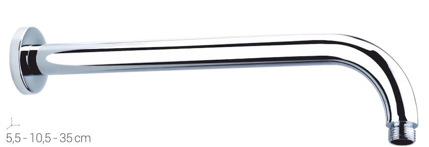 METAFORM TOP LINE. Braccio doccia arrotondato lunghezza 35 Cm in ottone cromato lucido, attacco a muro diametro 1/2.