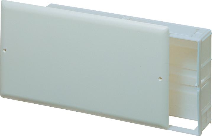 Cassetta di ispezione in plastica “TUTTO”. Possibilità di alloggiare ogni tipo di collettore usando gli appositi supporti ( Art. 7500 - 7550 ). Fissaggio del coperchio con viti.