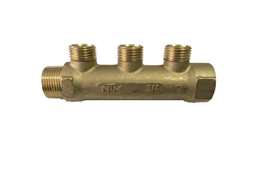 Collettore in Ottone Giallo per Tubo Reticolene D.3/4x18x3 Vie