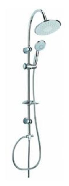 Materiale: Acciaio cromato e ABS. Saliscendi con interasse regolabile in acciaio inox cromato da 103 Cm, soffione da 21 Cm, doccetta da 10 cm a quattro getti anticalcare con eco stop