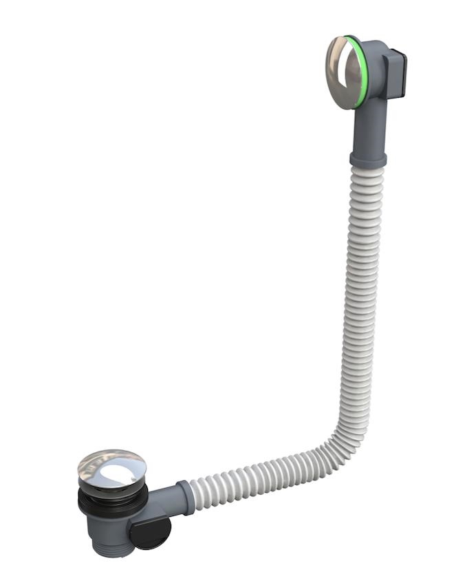 Scarico sifone Ø 50 mm, troppopieno flessibile saldato. Materiale Polipropilene PP + Ottone colore Bianco + Cromato. Applicazione: per vasca da bagno.