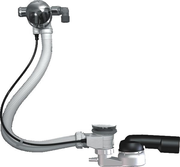 Colonna vasca 6/4', con sifone orizzontale snodato DN 40/50, erogazione integrata 3/4', cavo 60 cm e parti a vista in ottone cromato. Versione migliorata con nuovo meccanismo, presa d'acqua a sinistra o a destra.