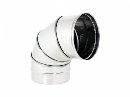 La curva regolabile INOX 0° - 90° rappresenta il componente fondamentale per le regolazioni d’asse, nei tratti verticali o sub orizzontali, di un sistema camino. E’ realizzata con quattro settori tra loro aggraffati.