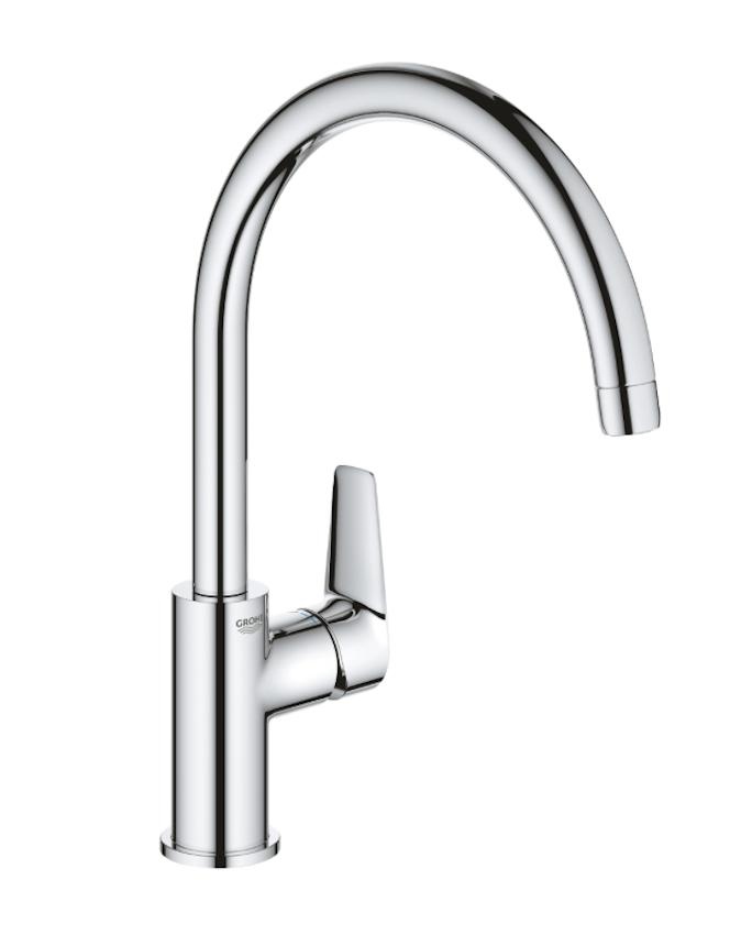 Rubinetto monocomando per la cucina GROHE BauEdge, con la bocca alta dal raggio di rotazione di 360°, semplicità e comfort sono a portata di mano