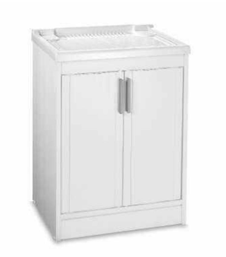 Mobile in Legno Bianco con Lavatoio in Acrilico Cm L60 x P60 x H86