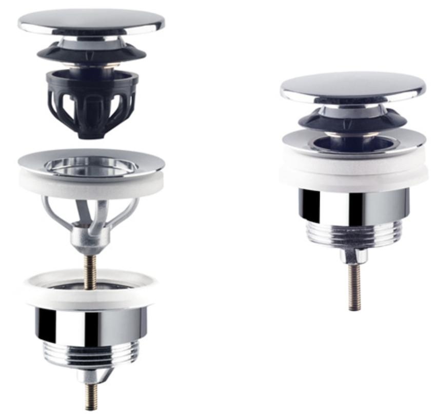 Piletta universale dal minimo ingombro, Tea di OMP è la piletta per lavabo e bidet che nonostante un intervallo di regolazione da 0 a 60 mm, ha un ingombro di soli 20 mm.