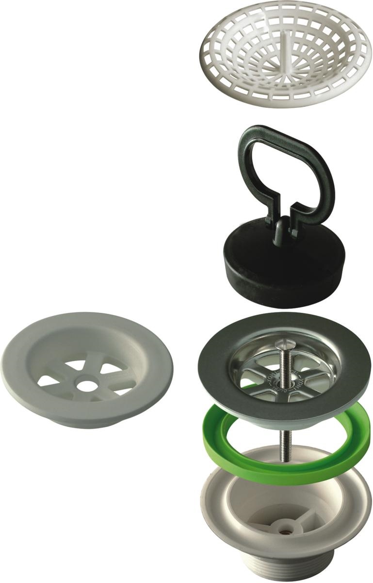 Piletta tradizionale per lavello cucina senza troppopieno, Flangia D.70, materiale POLIPROPILENE PP+ ACCIAIO INOX, colore BIANCO + LUCIDO. Applicazione: Lavelli cucina con foro D.70 mm, portata (l/min) 101.1
