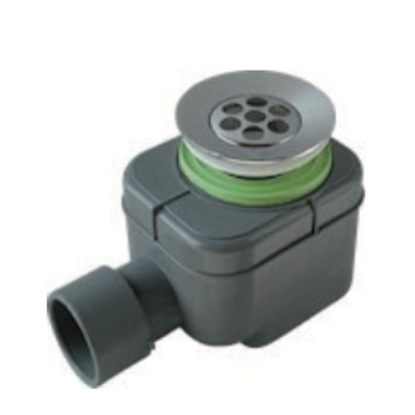 Sifone “SPLASH” per doccia in PVC con scarico liscio, flangia piletta ø 80 mm in ottone. Materiale PVC + OTTONE, colore GRIGIO + CROMATO. Applicazione Per piatti doccia con foro Ø 60 mm. Portata (l/min) 37.