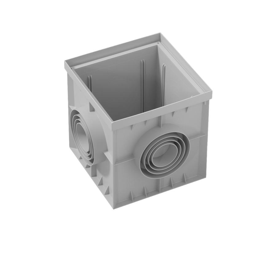 Pozzetto standard di forma cubica con dimensioni dal 200 x 200 di colore grigio. Caratterizzato da: peso leggero che permette un facile trasporto, posizionamento e messa in opera