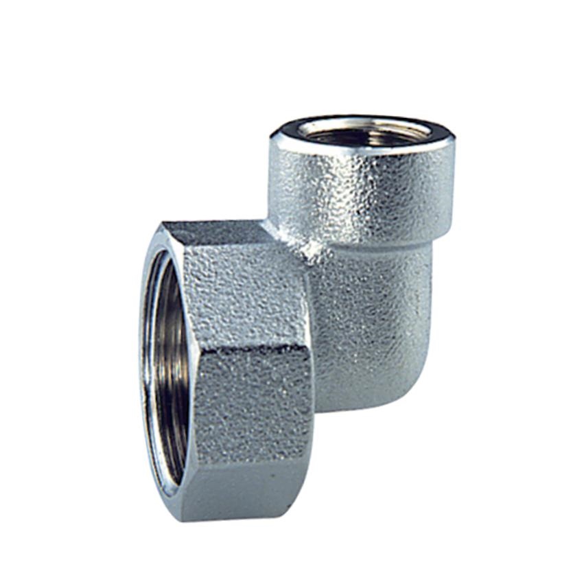 Raccordo terminale a squadro cromato per collettori componibili. Attacco: 3/4”-1”- 1”1/4 femmina. Derivazioni: 1/4”-3/8”-1/2” femmina.