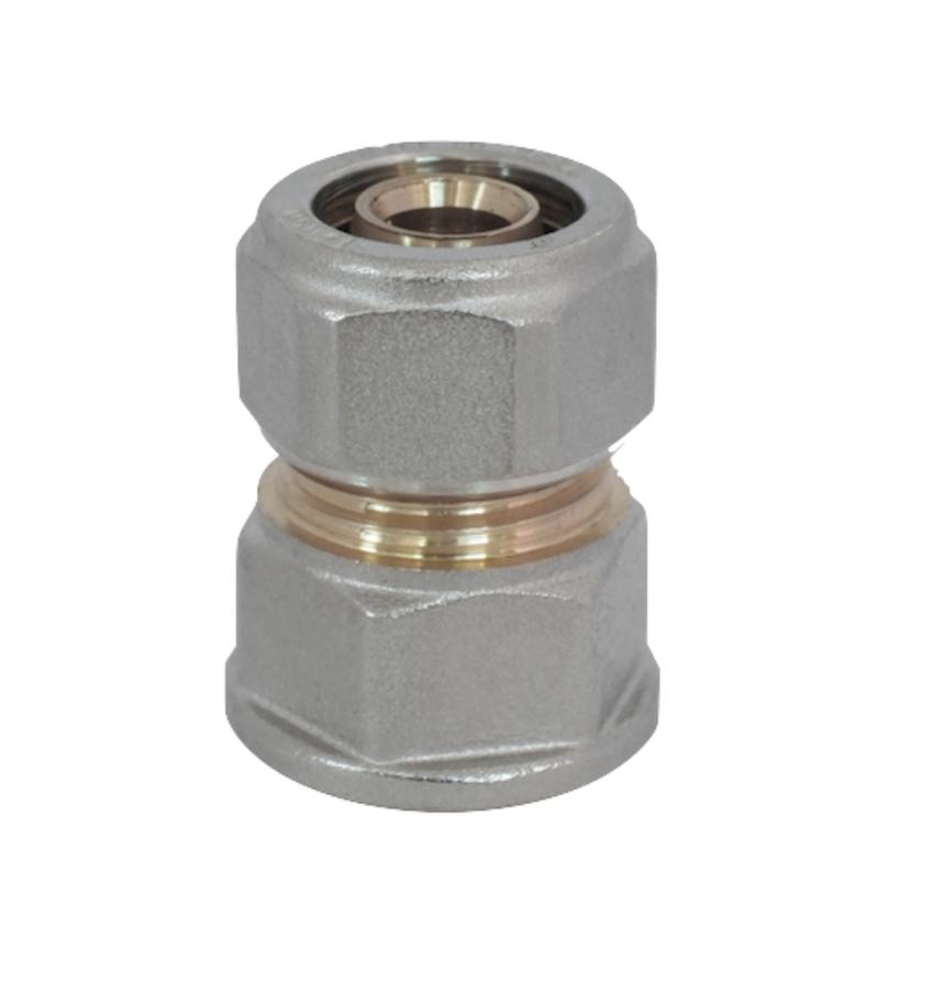 Raccordi a Compressione nichelati realizzati in ottone UNI EN 12165 CW617N stampato a caldo adatti al serraggio del Tubo Multistrato. La tenuta idraulica è garantita da due O-Ring in NBR 70 Sh.