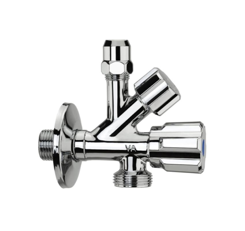 Rubinetto combinato lavatrice, vitone ottone, maniglie ABS, dado conico alto, rosone inox, cromato