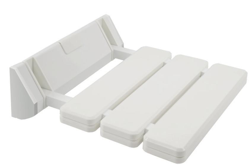 Sedile ribaltabile per doccia in alluminio verniciato bianco e materiale palstico. Portata 130 kg. Cm 31.5 x 9 x 33