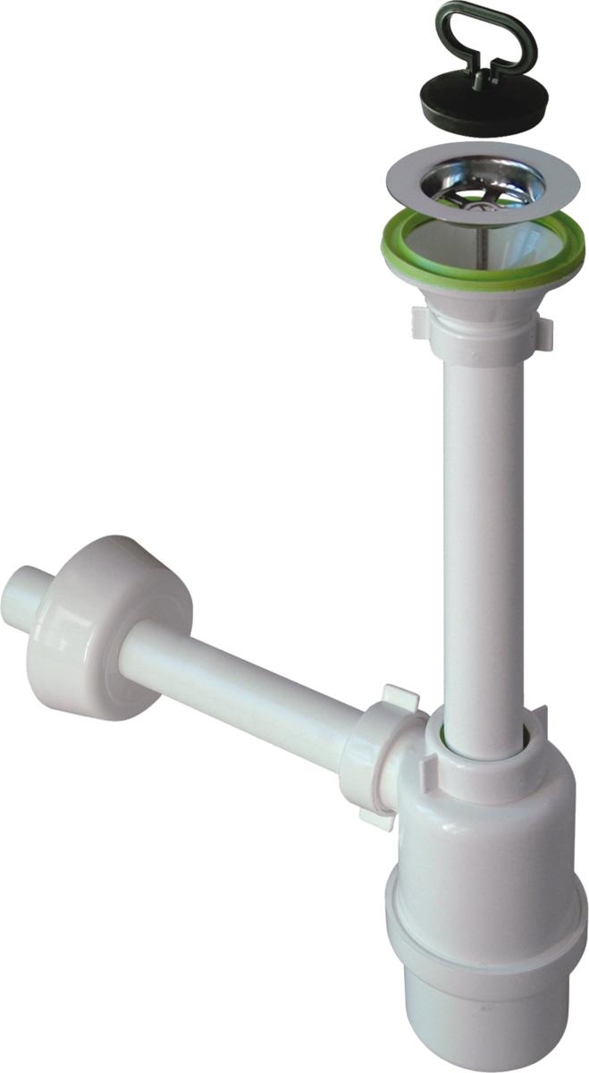 Sifone “FIASCA” per lavello a 1 Via, scarico D.32 x 200 mm, materiale POLIPROPILENE PP colore bianco. Applicazione: per lavelli cucina ad una bacinella, portata (l/min) 46.6