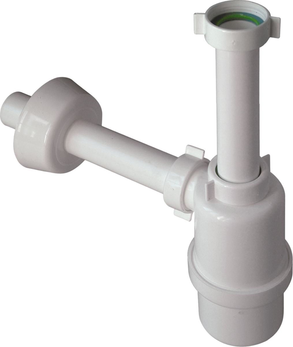 Sifone ‘FIASCA’ per lavello a 1 Via, scarico D.32 x 200 mm, materiale Polipropilene PP colore bianco. Applicazione: per lavelli cucina ad una bacinella, portata (l/min) 46.6