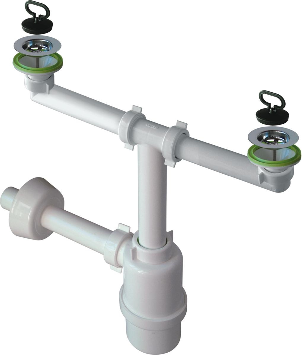 Sifone per lavello a 2 Vie, piletta gattinara in plastica D.80 mm ,scarico D.32 x 200 mm,materiale POLIPROPILENE PP + ACCIAIO INOX,colore BIANCO + LUCIDO. Applicazione per lavelli cucina a due bacinelle.Portata (l/min) 2