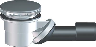 Sifone per piatto doccia DN 40/50 con foro D. 90 mm, snodo 0-90° per deflusso orizzontale-verticale, livello d'acqua 50 mm e piastra in acciaio cromo D. 112 mm (anche di altri colori).