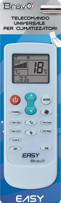 Ricerca per marca,totale ed inserimento codice diretto•Ampio display che indica le funzioni in uso.Sostituisce le principali funzioni dei telecomandi originali.Completo di funzioni avanzate Raffrescamento e Riscaldamento