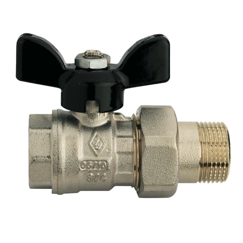 Valvola a sfera a passaggio totale, filettatura Femmina, raccordo per collettori con farfalla in alluminio.