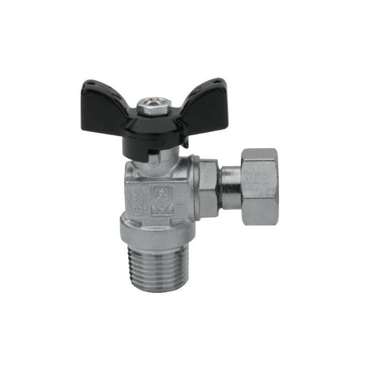 Valvola a sfera, filettatura maschio, con girello, farfalla in alluminio.