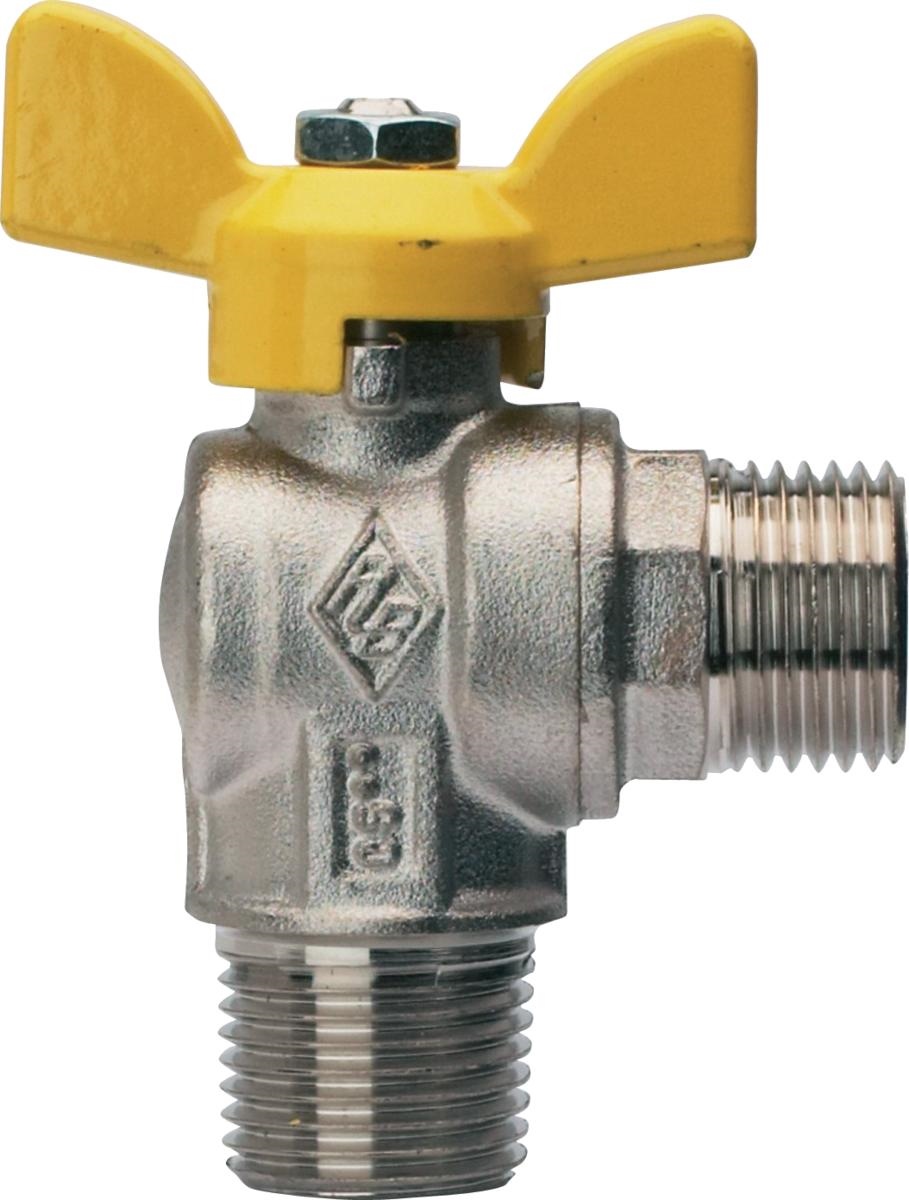 Certificata EN 331. Attacchi filettati maschio/maschio, maniglia a T bloccabile in alluminio, corpo in ottone nichelato. Temperatura minima e massima d’esercizio: -20°C - 60°C. Attacchi filettati maschio ISO 7/1 R conico