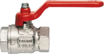 Valvola a sfera serie BEST in ottone nichelato, a passaggio standard. Filettatura F/F. Leva piatta rossa in acciaio.